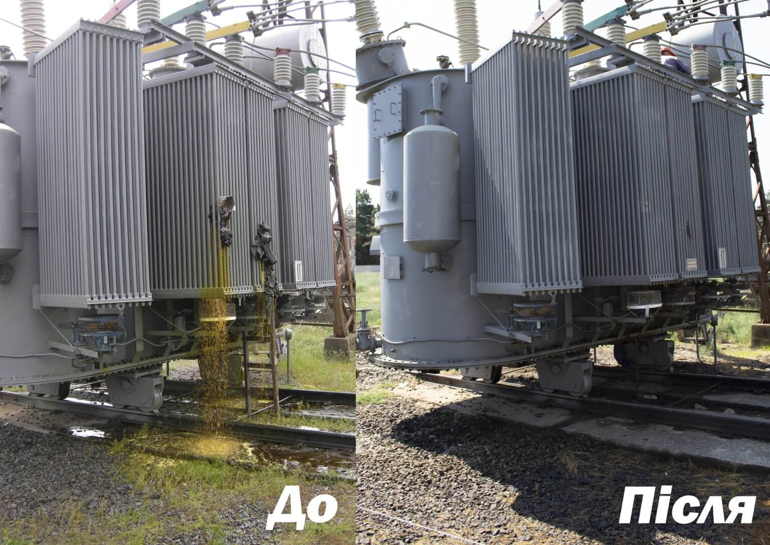 Як описали ситуацію у компанії, спочатку уламками снарядів було завдано суттєвої шкоди потужному трансформатору 40 МВА, а коли фахівці закінчили ремонт та були готові повернути його в роботу, черговий "приліт" вивів з ладу і другий трансформатор – через численні пробоїни на землю вилилися десятки тонн оливи.